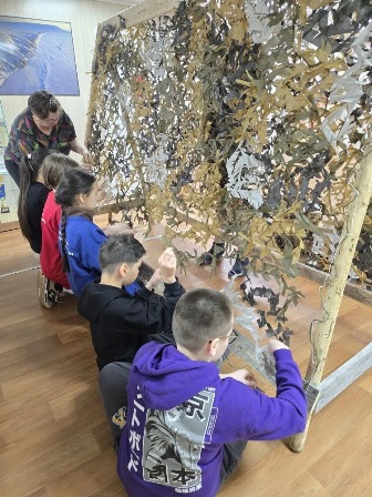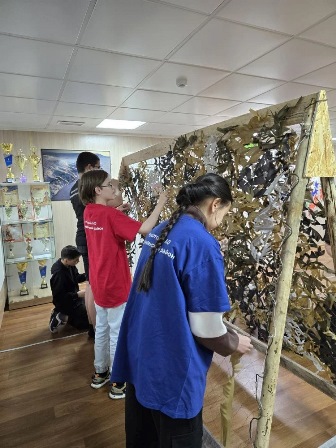 Активисты движения первых и учащиеся 6-7 классов приняли активное участие в изготовлении маскировочной сети для наших защитников участников СВО.