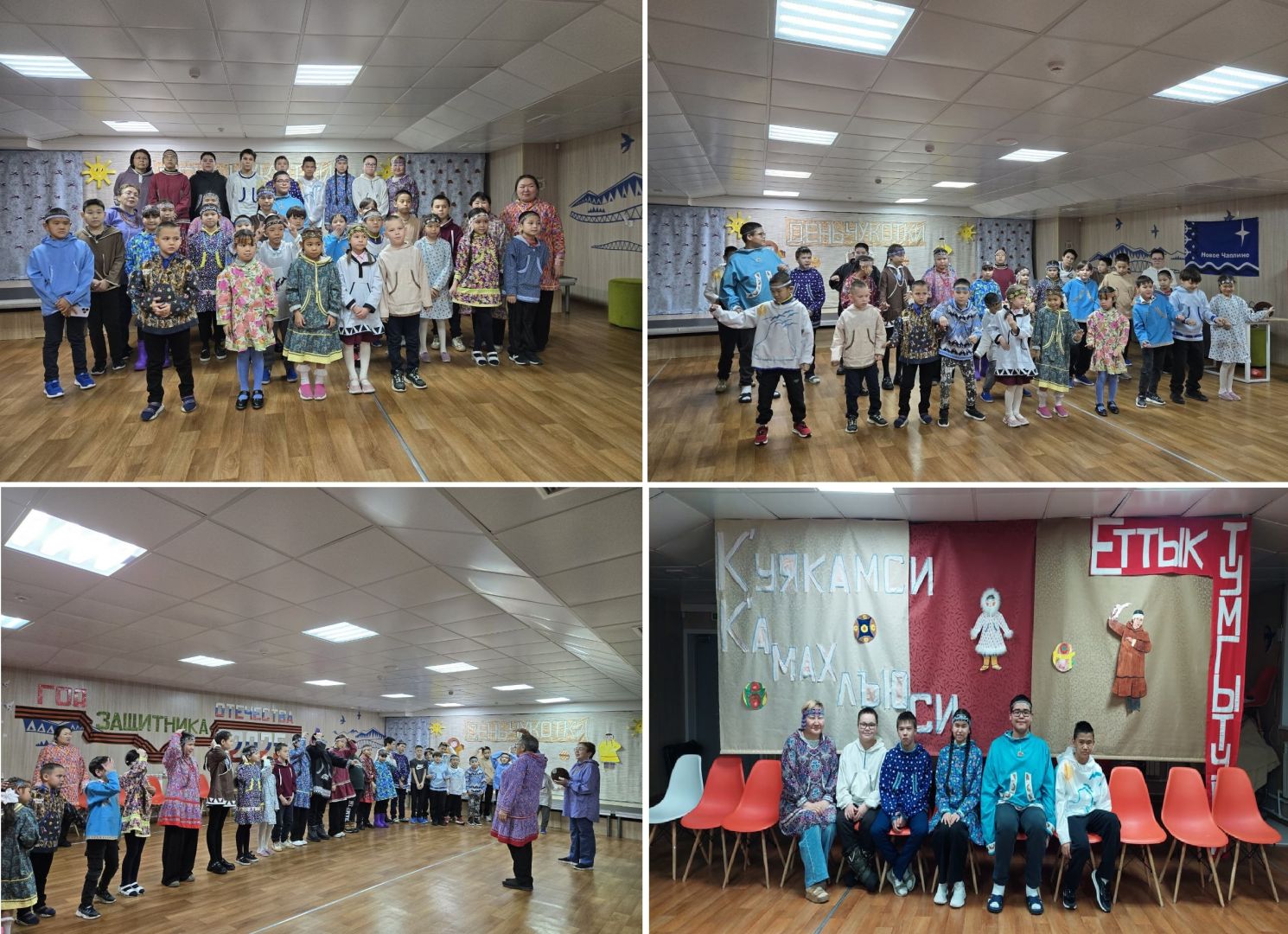 Все учащиеся, с 1 и по 9 классы приходят в камлейках, не отстают от них и педагоги. Во второй половине дня проходит конкурсно – развлекательное мероприятие «Веселая камлеечка» Ребята совместно с классными руководителями готовят защиту своих камлеек. В этом году свое мероприятие мы провели в сельском клубе. Начался праздник с вольного танца, затем библиотекарь села, Ермолаева Л.Н. провела викторину. Между номерами, Ольга Алексеевна Эттына, проводила игры с эскимосским мячом. Елена Ивановна Курипко аккомпанировала всем участникам, стучала и пела на сяг,уяке- бубне. Все ребята показали свои прекрасные камлейки, отлично провели защиту ,показали знания в викторине, силу и ловкость в играх с мячом. Особенно хочется отметить самых маленьких участников праздника, наших первоклашек. Они прекрасно прочитали стихи о камлейке. Читали стихи: З. Ненлюмкиной «ВОЛШЕБНАЯ КАМЛЕЙКА», Простаков В. «Полярная весна» отрывок .Ученица 4 класса, Анака Мария сочинила четверостишье . Первоклассники и ученики третьего класса представили стихи сгенерированные ИИ. Конкурсная программа «Веселая камлеечка» закончился вольным танцем.